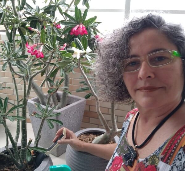 “Aqui em casa não tem um dia dos 365 em que a gente não descobre uma flor. Mesmo quando o tempo está seco e não chove há dias, sempre aparece uma florzinha”, revelam. Manacá, Antúrio, Momiji, Glicínia, inúmeras suculentas e por aí vai.